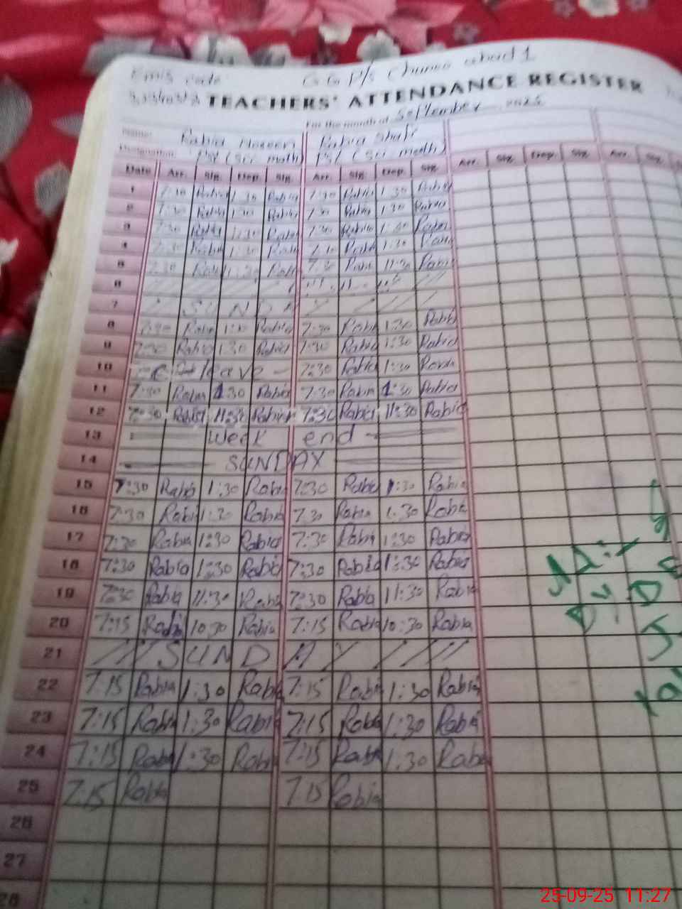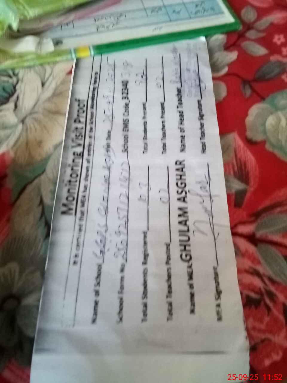 | Attendance Register | Head Teacher | MEA with School | Visit Proof |