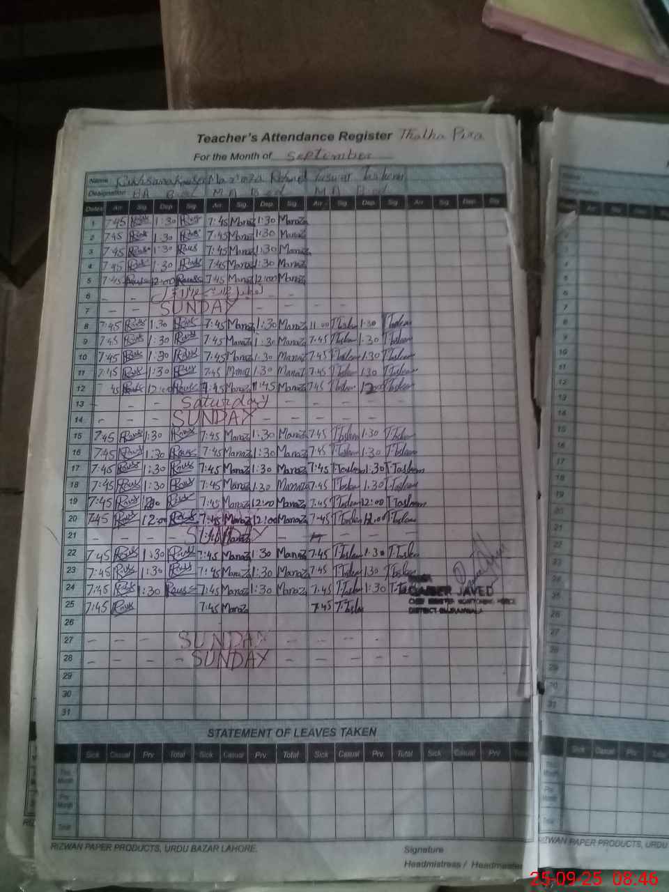 | Name: RU**** Designation: (School Headmaster's/Headmistress's) PST Phone/Cell Number: 03**** |