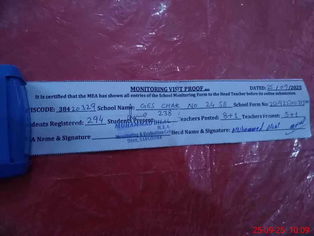 | EMIS Code: 38420329 | Name of School: GES CHAK NO.24 SB | |||