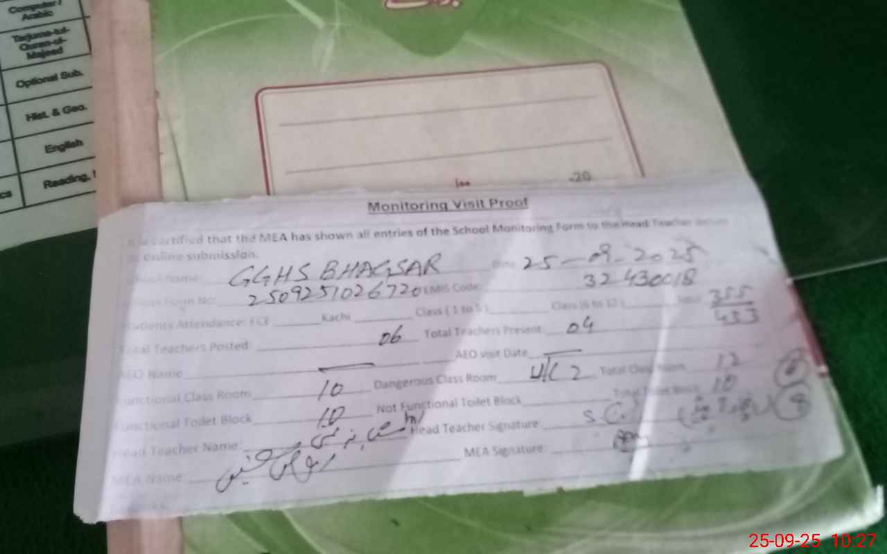 | EMIS Code: 32430018 | Name of School: GGHS BHAGSAR | |||