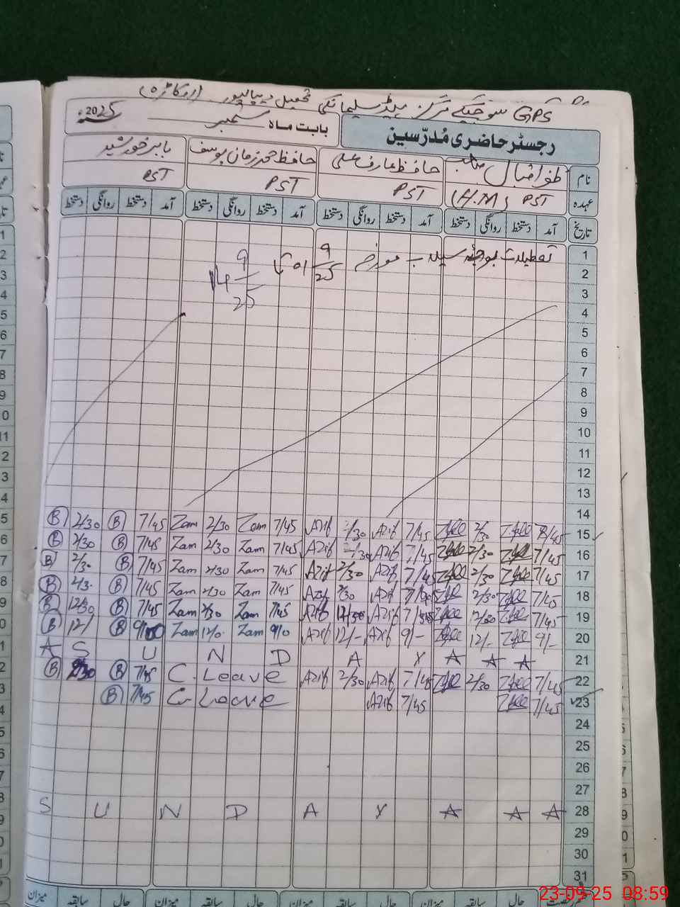 | CNIC | Full Name | Designation | R/C | Absence During Last Calender Month |