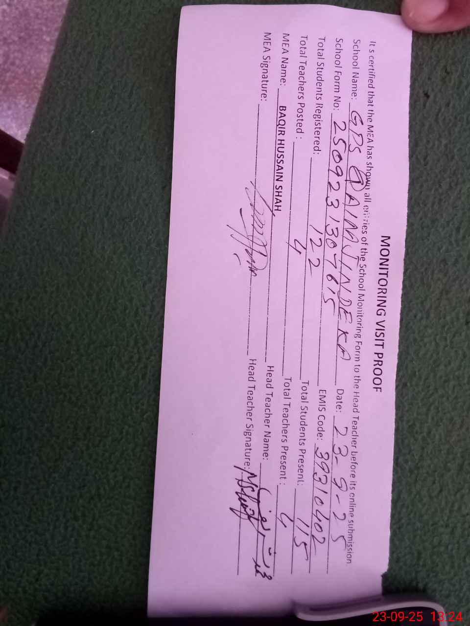 | EMIS Code: 39310402 | Name of School: GPS QAIM JINDE KA | |||