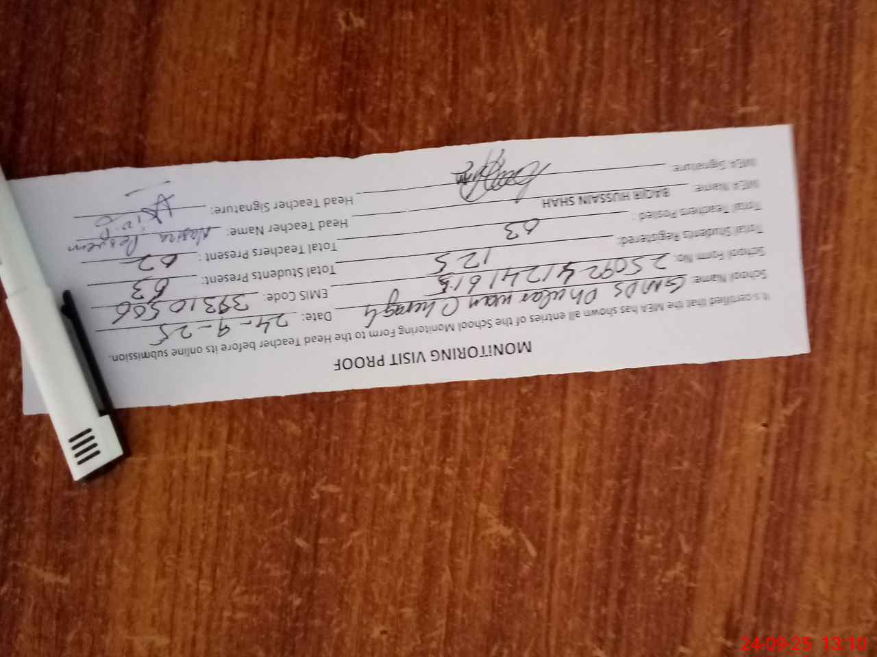 | Attendance Register | Head Teacher | MEA with School | Visit Proof |