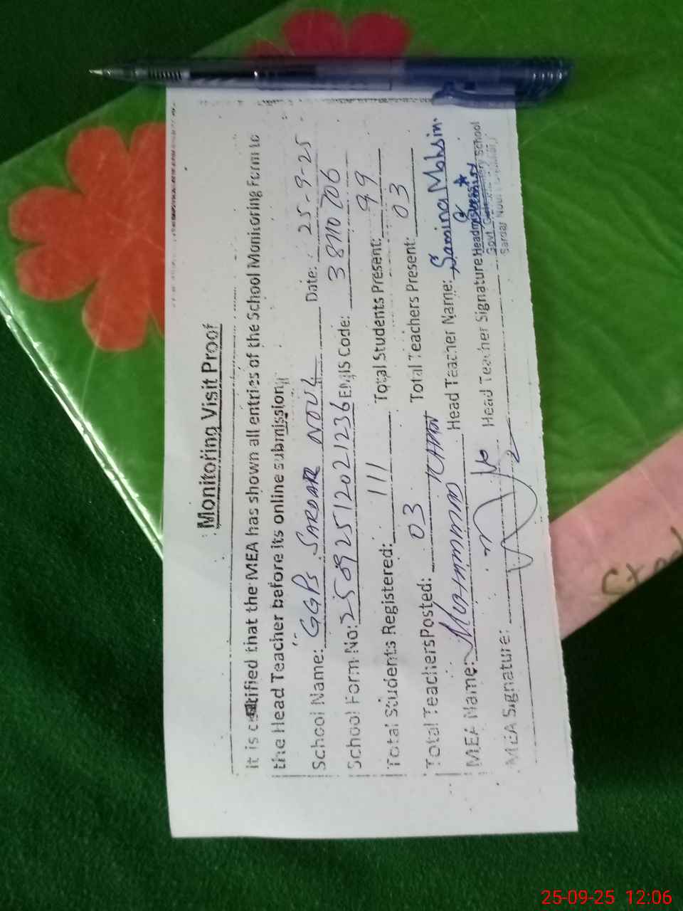 | EMIS Code: 38110706 | Name of School: GGPS SARDAR NOUL | |||