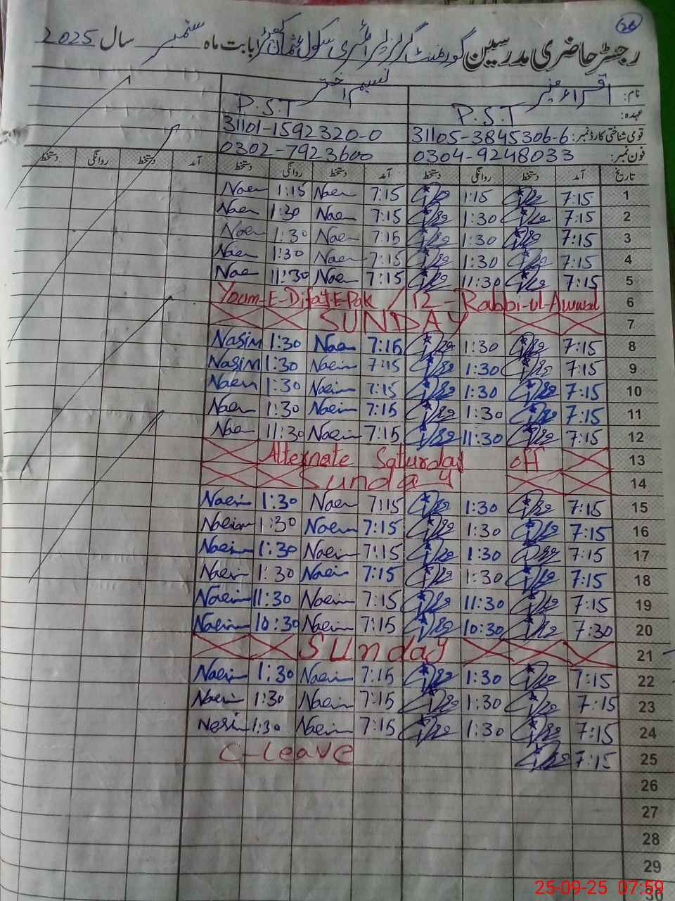 | Name: Iq**** Mu**** Designation: (School Headmaster's/Headmistress's) PST Phone/Cell Number: 03**** |