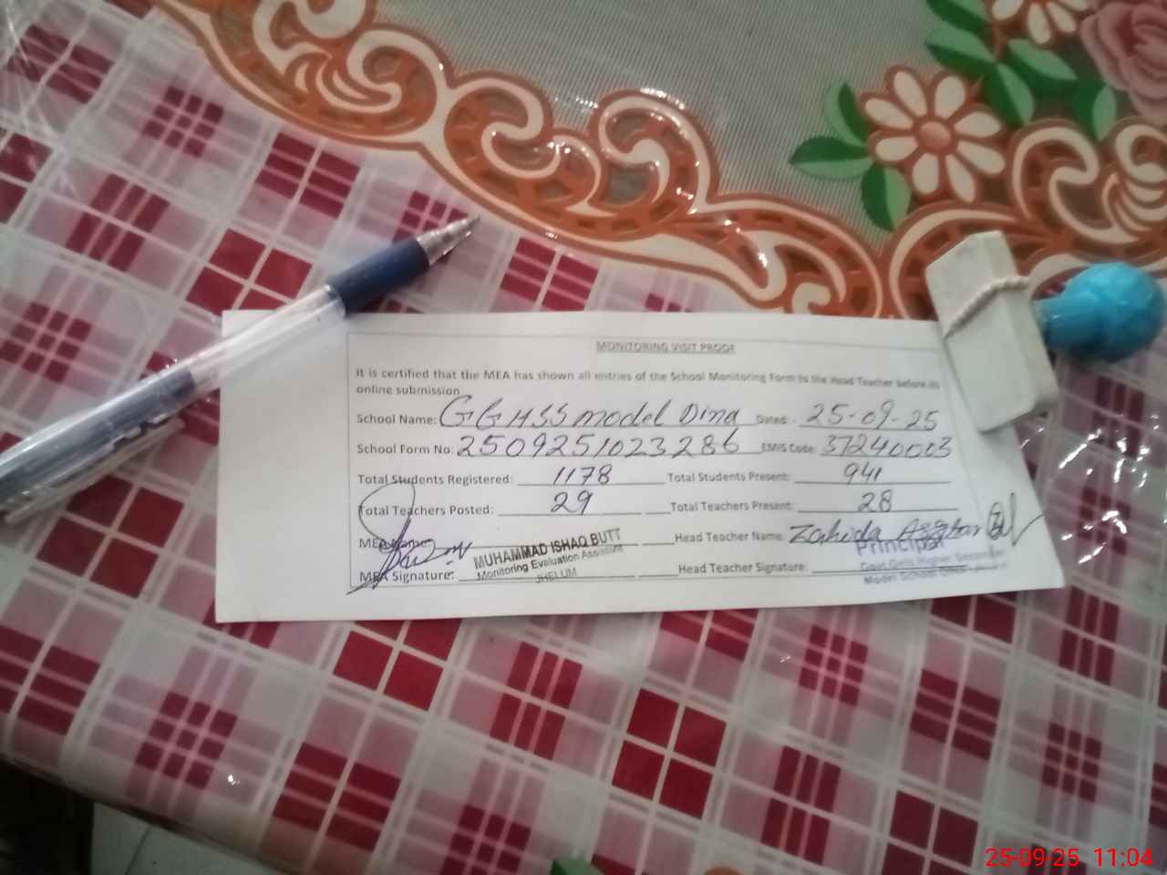 | EMIS Code: 37240003 | Name of School: GGHSS MODEL DINA | |||