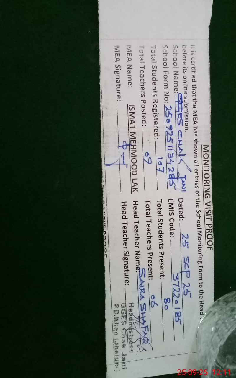 | EMIS Code: 37220185 | Name of School: GGES CHAK JANI | |||