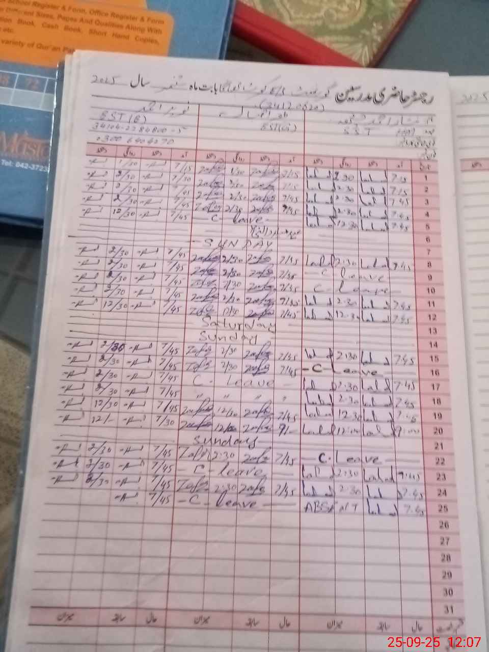 | CNIC | Full Name | Designation | R/C | Absence During Last Calender Month |