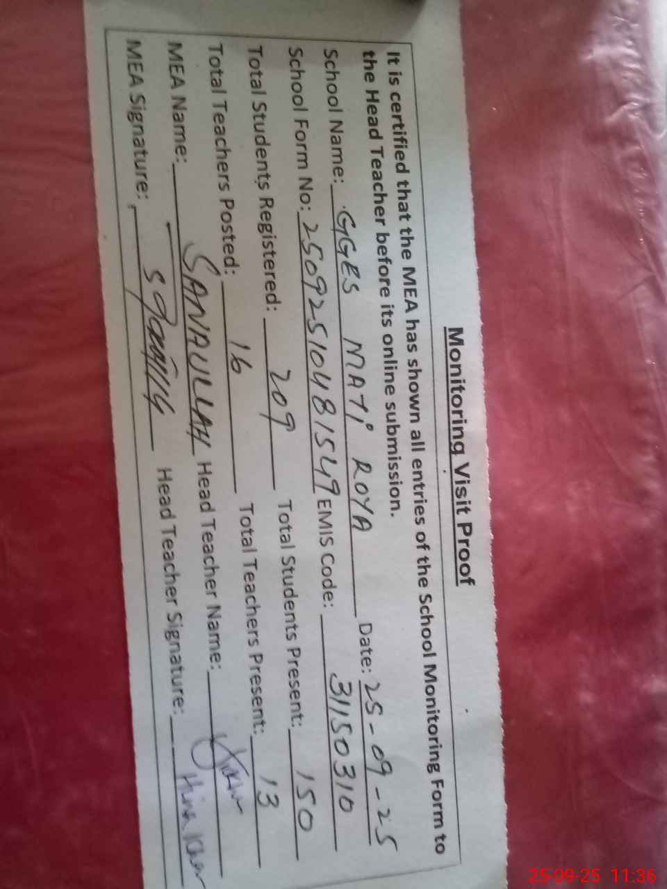 | EMIS Code: 31150310 | Name of School: GGES MATI ROYA | |||