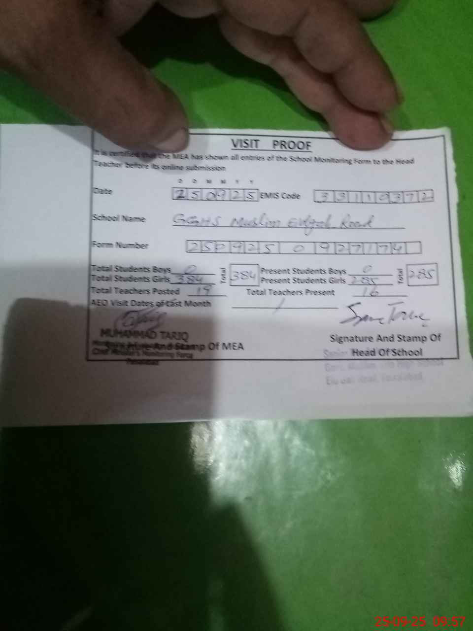 | EMIS Code: 33110372 | Name of School: GGHS MUSLIM, EID GAH ROAD FAISLABAD | |||