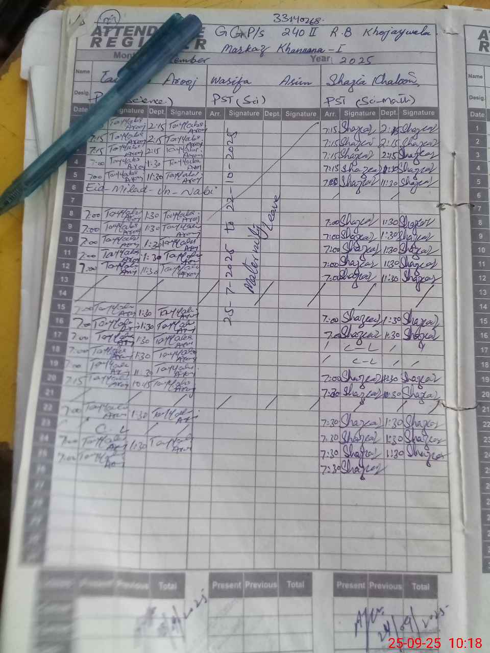 | 33**** | Wa**** As**** | PST | Regular | 31 | 0 | 0 | 31 | 0 | 0 | 0 | 0 | 0 | Maternity |