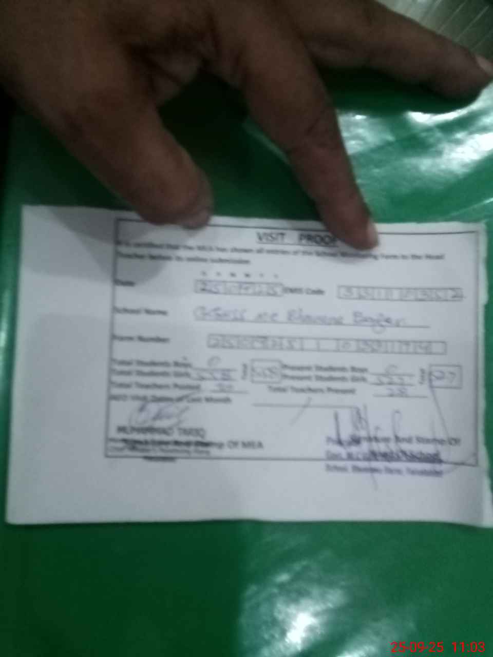 | Attendance Register | Head Teacher | MEA with School | Visit Proof |