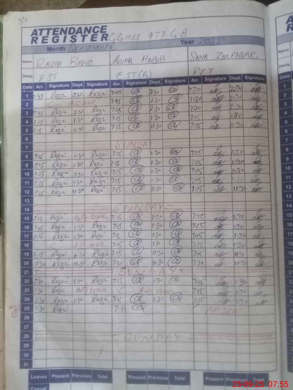 | 33**** | Sa**** Zu**** | EST | Regular | 0 | 0 | 0 | 0 | 0 | 0 | 0 | 0 | 0 | Absent (Un-Authorized) |