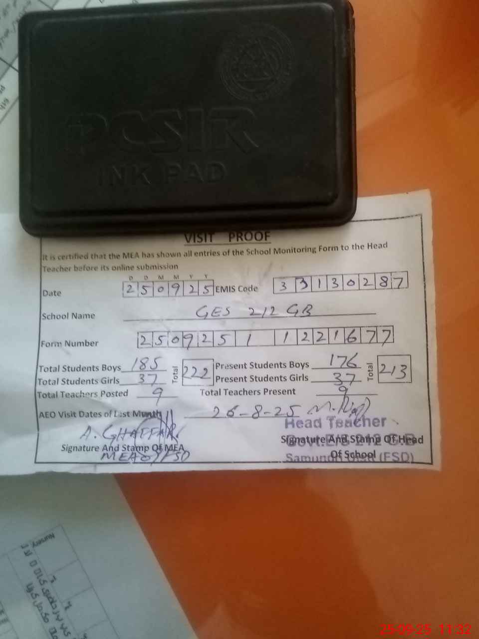 | EMIS Code: 33130287 | Name of School: GES 212/GB | |||