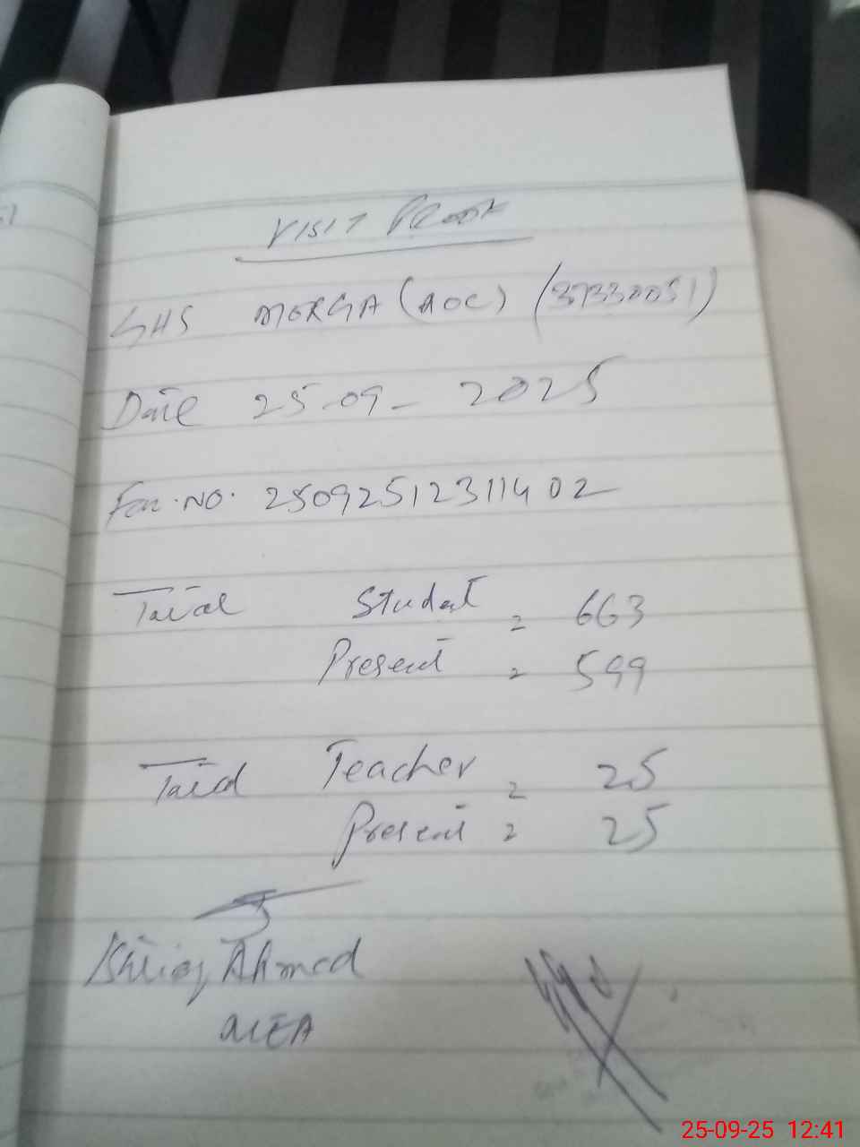 | Attendance Register | Head Teacher | MEA with School | Visit Proof |