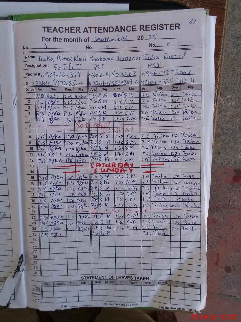 | 33**** | Za**** Ri**** Kh**** | PST | Temporary | 0 | 0 | 0 | 0 | 0 | 0 | 0 | 0 | 0 | Casual |