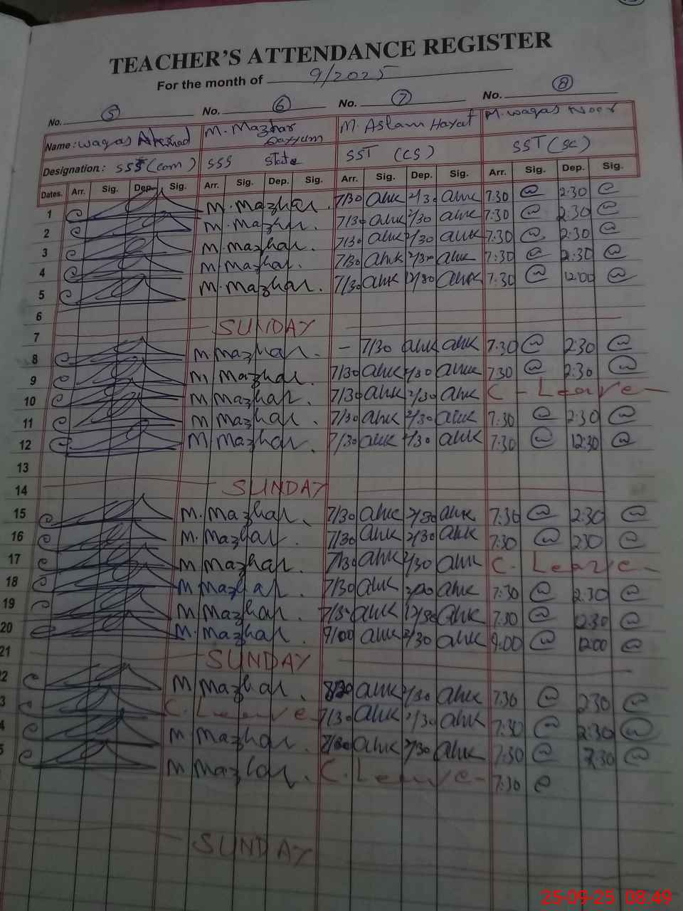 | CNIC | Full Name | Designation | R/C | Absence During Last Calender Month |