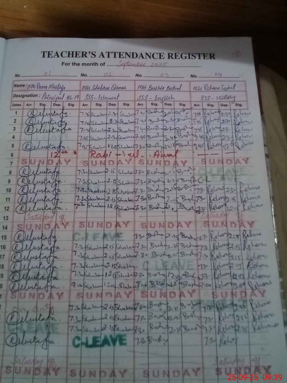 | 38**** | Za**** Am**** | 1 | 0 | 0 | 31 | 0 | 0 | 0 | 0 | 0 | 0 | Absent (Un-Authorized) | |