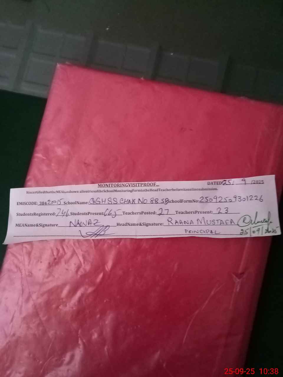 | EMIS Code: 38420015 | Name of School: GGHSS CHAK NO.88 SB | |||