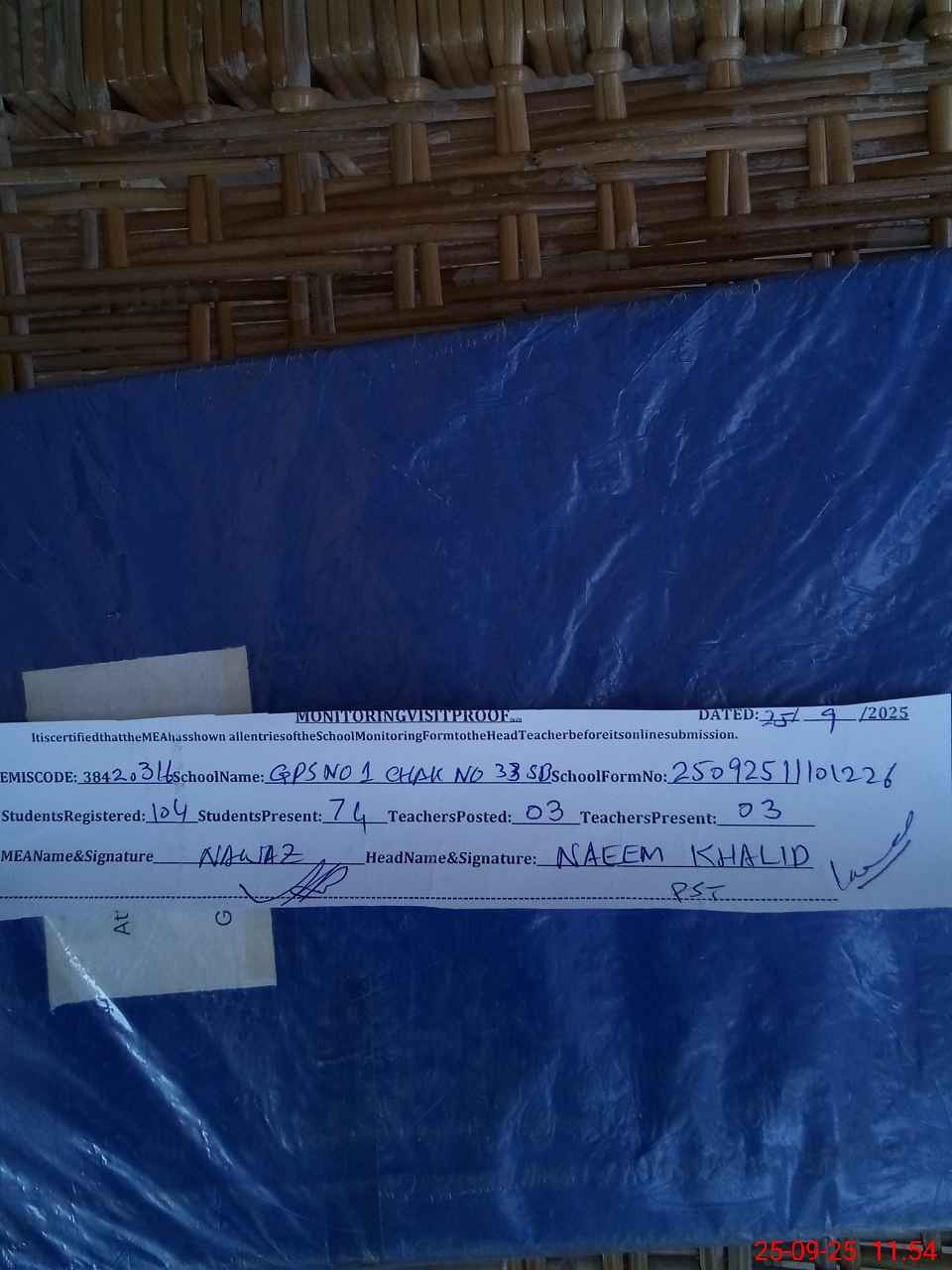 | Attendance Register | Head Teacher | MEA with School | Visit Proof |