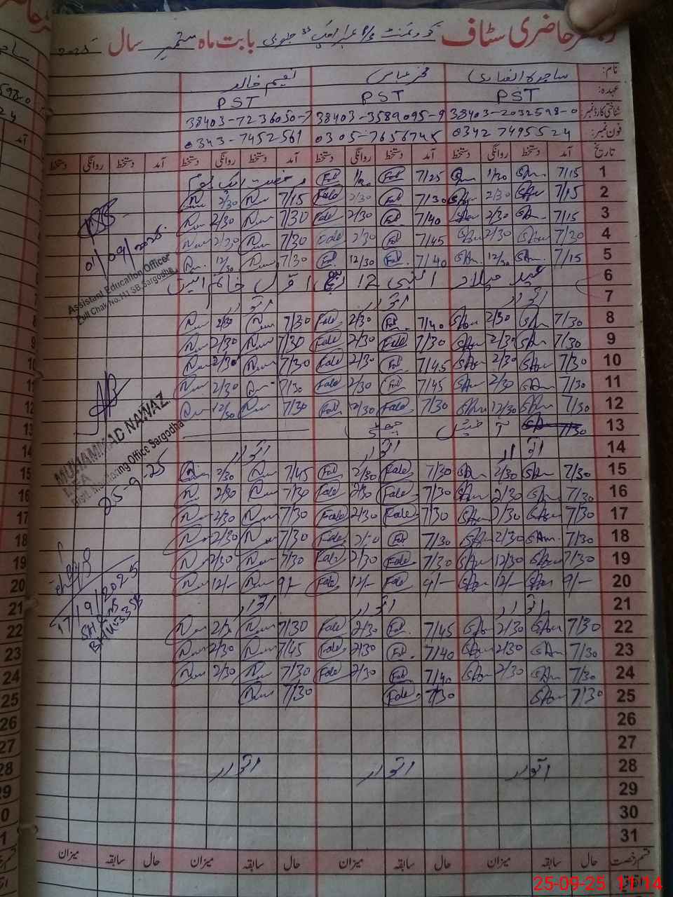 | Name: Na**** Kh**** Designation: (School Headmaster's/Headmistress's) PST Phone/Cell Number: 03**** |