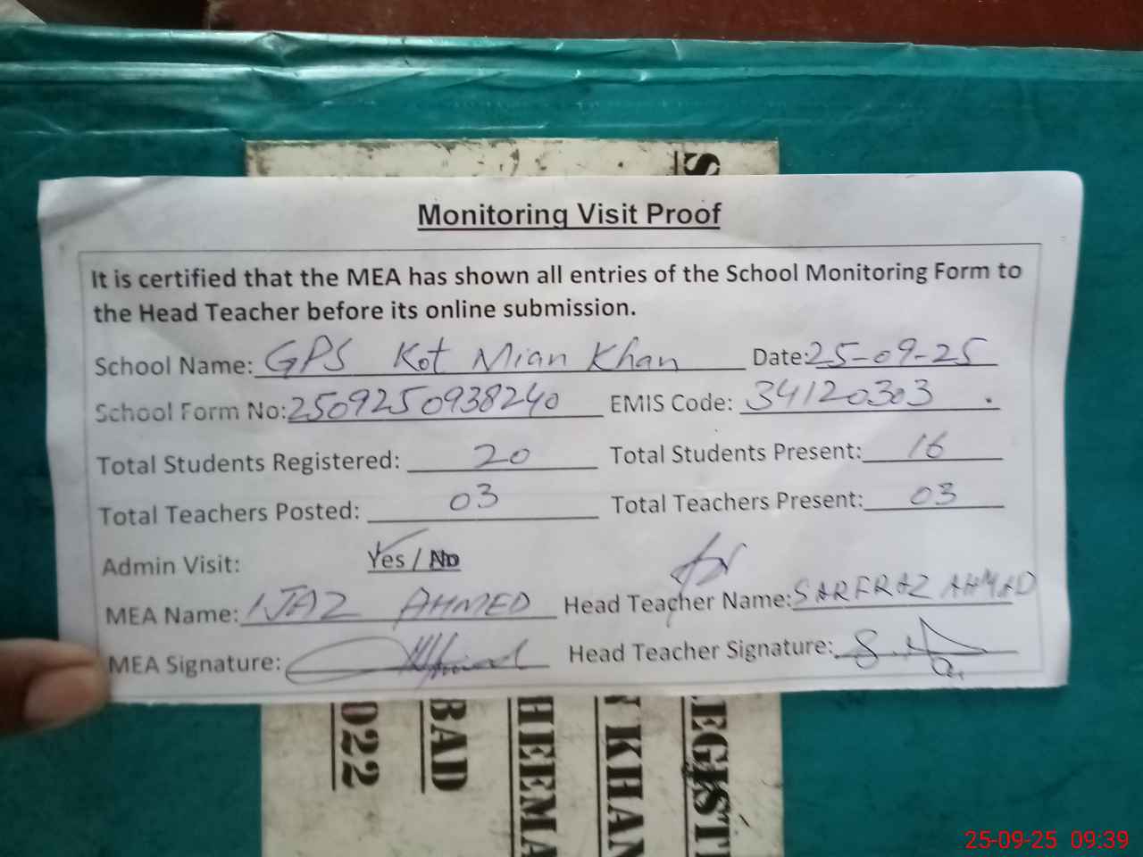 | EMIS Code: 34120303 | Name of School: GPS KOT MIAN KHAN | |||