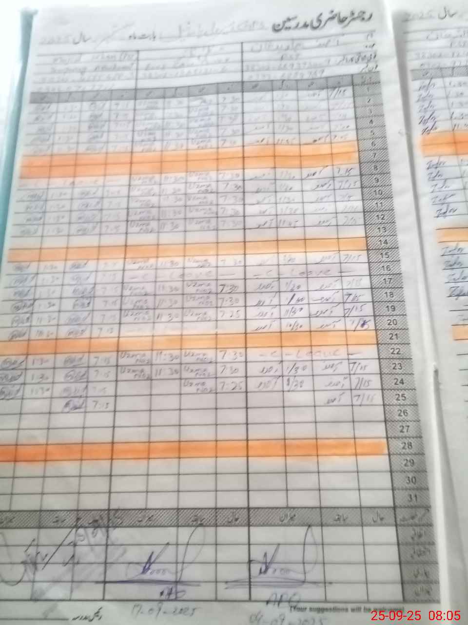 | Monitoring Date: 25-09-2025 | Start Time: 25-09-2025 08:01 AM | End Time: 25-09-2025 08:54 AM | Name of MEA: Gh**** Mu**** | |