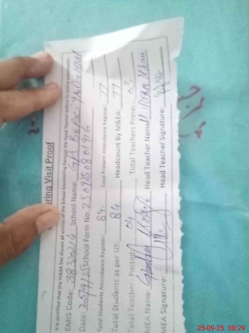 | Attendance Register | Head Teacher | MEA with School | Visit Proof |
