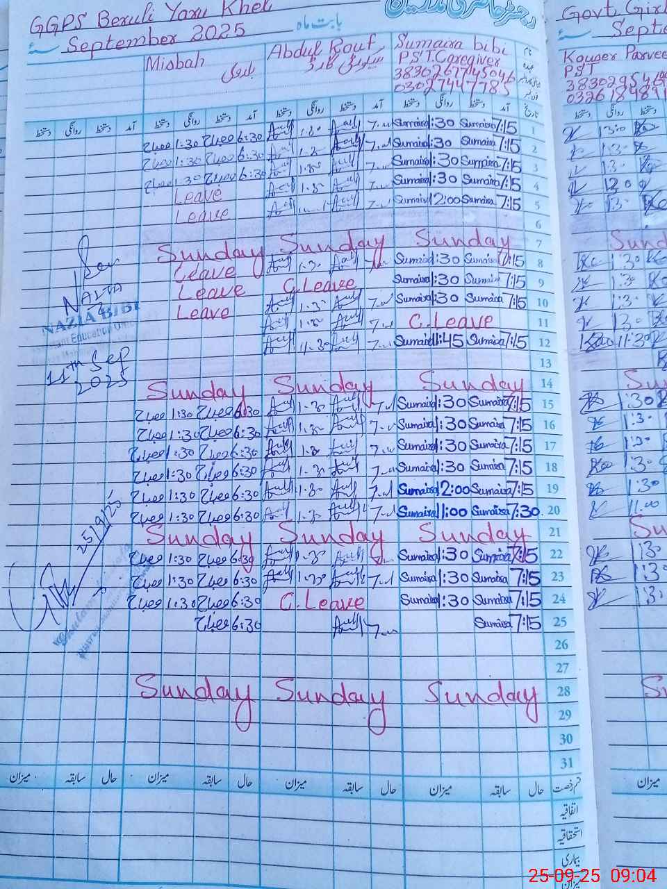| CNIC | Full Name | Designation | R/C | Absence During Last Calender Month |