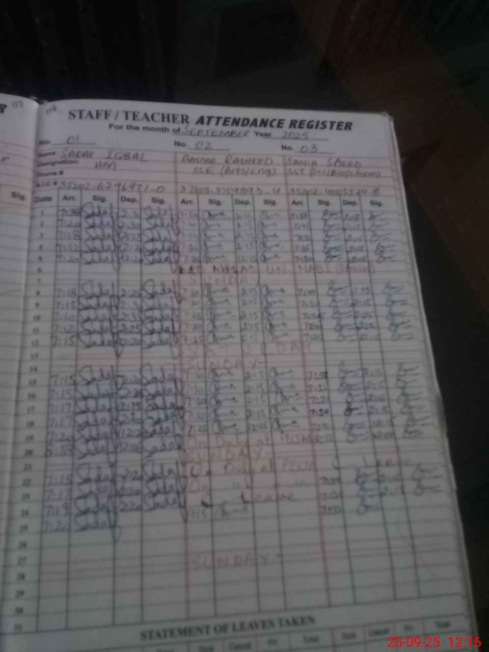 | Name: Sa**** Iq**** Designation: (School Headmaster's/Headmistress's) Head Mistress Phone/Cell Number: 03**** |