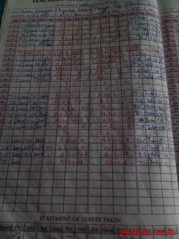 | 37**** | Ay**** Gh**** | EST | Regular | 0 | 0 | 0 | 0 | 0 | 0 | 0 | 0 | 0 | Absent (Un-Authorized) |
