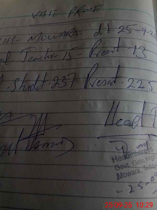 | Certified that this School was Inspected by the Undersigned MEA/DMO Today and the Information Stated Above is as Per Record. | |||||