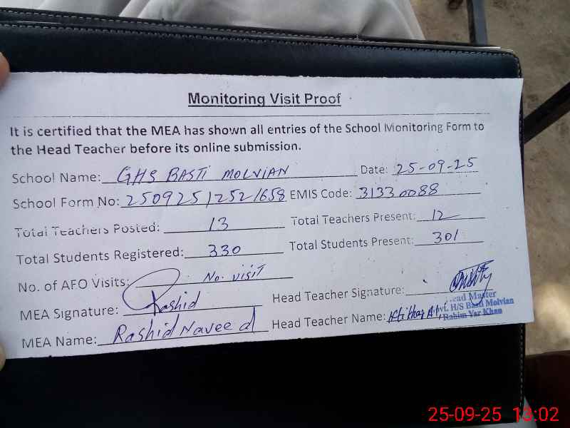 | EMIS Code: 31330088 | Name of School: GHS BASTI MOLVIAN | |||