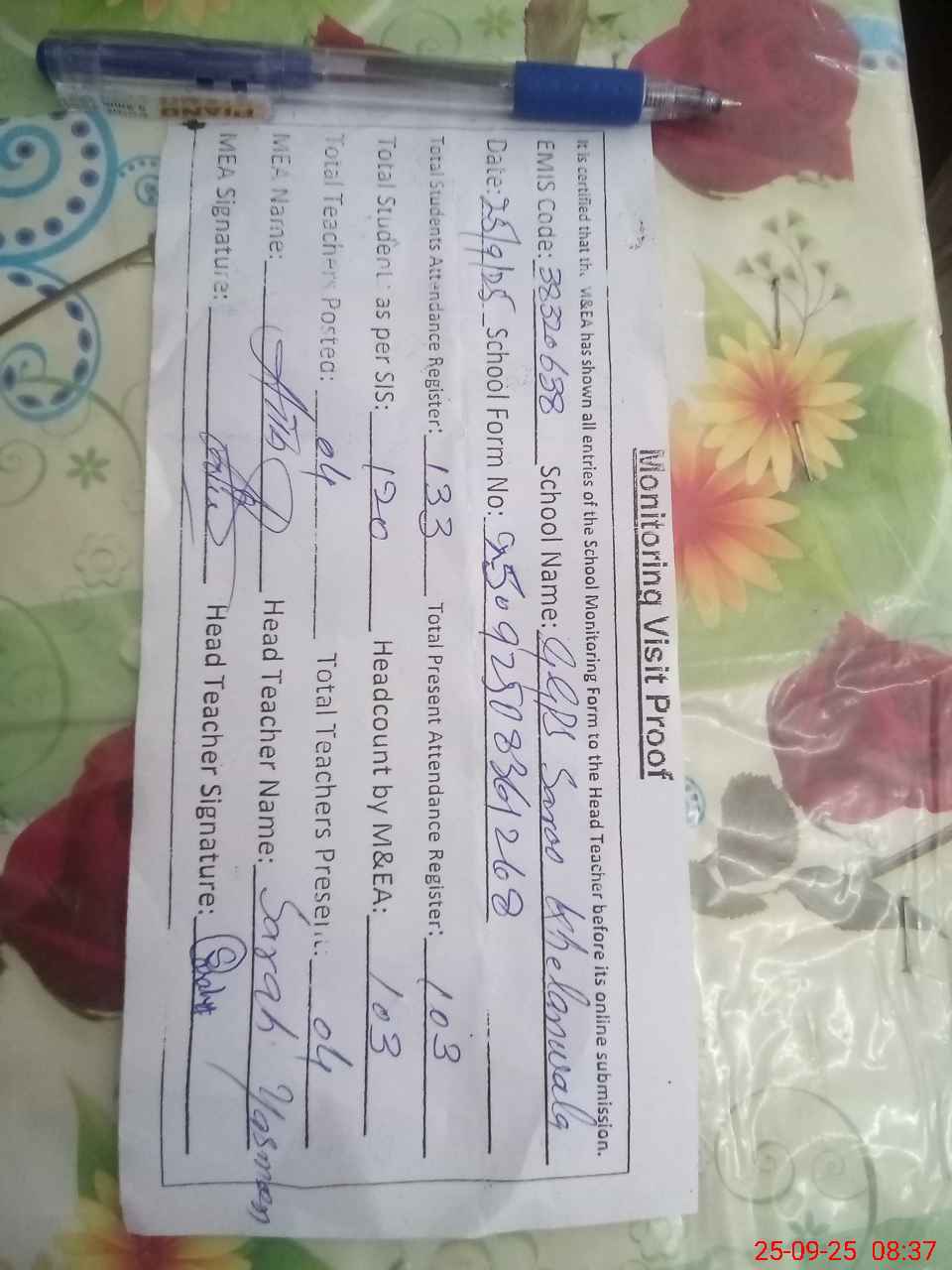 | EMIS Code: 38320698 | Name of School: GGPS SAROO KHELAN WALA | |||