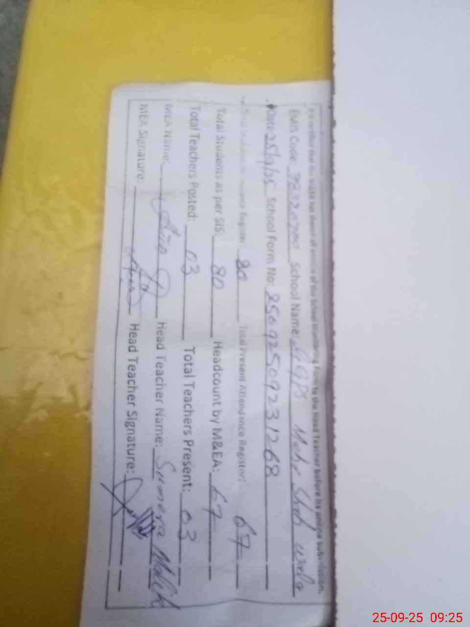 | Attendance Register | Head Teacher | MEA with School | Visit Proof |