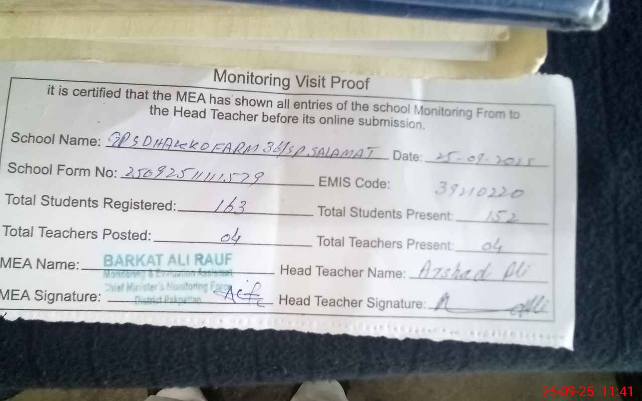 | EMIS Code: 39210220 | Name of School: GPS DHAKKO FARM CHAK NO. 36/SP SALAMAT PURA | |||