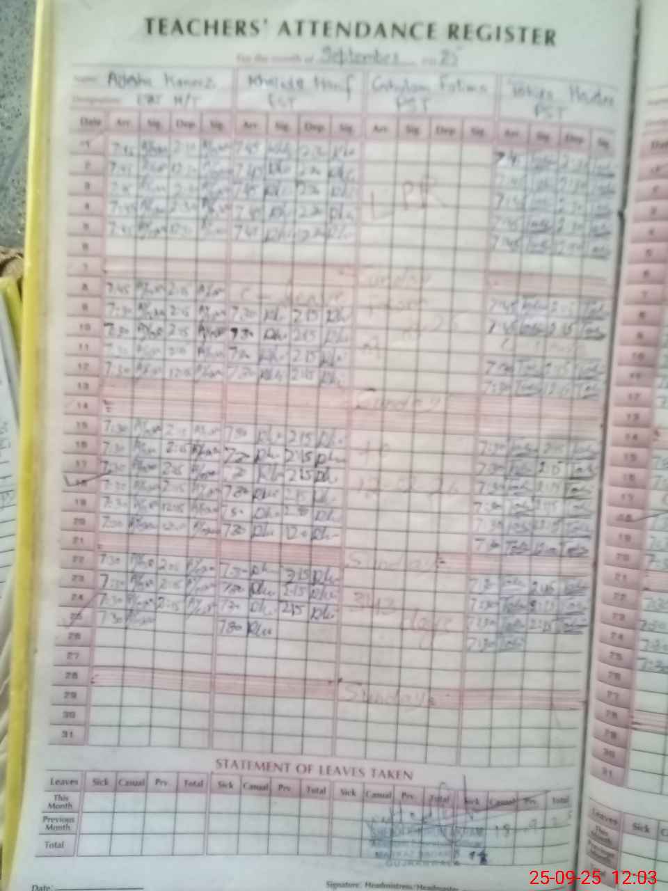 | 34**** | Ta**** Na**** | PST | Regular | 0 | 0 | 0 | 0 | 0 | 0 | 0 | 0 | 0 | Casual |