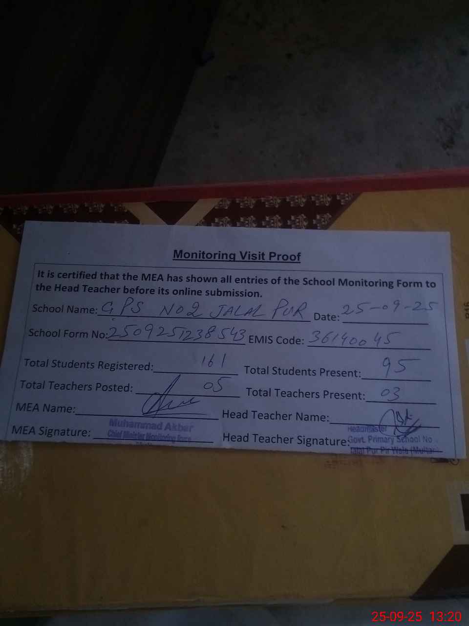 | EMIS Code: 36140045 | Name of School: GPS No. 2 JALALPUR PIRWALA | |||
