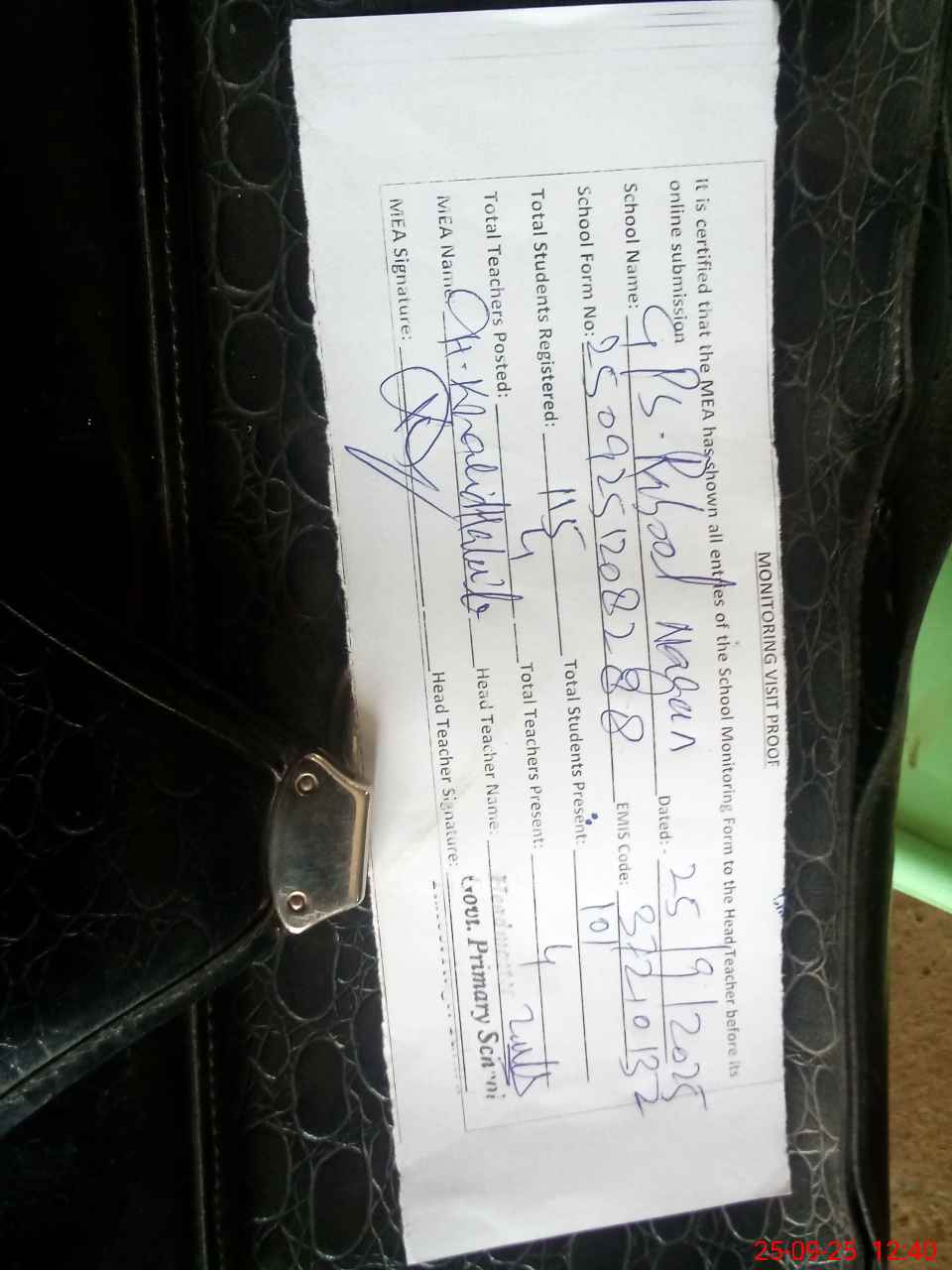 | Attendance Register | Head Teacher | MEA with School | Visit Proof |