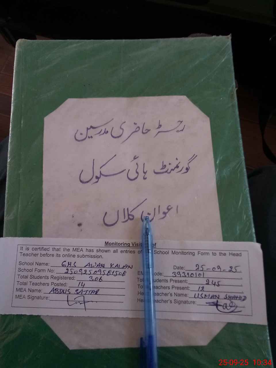 | Attendance Register | Head Teacher | MEA with School | Visit Proof |