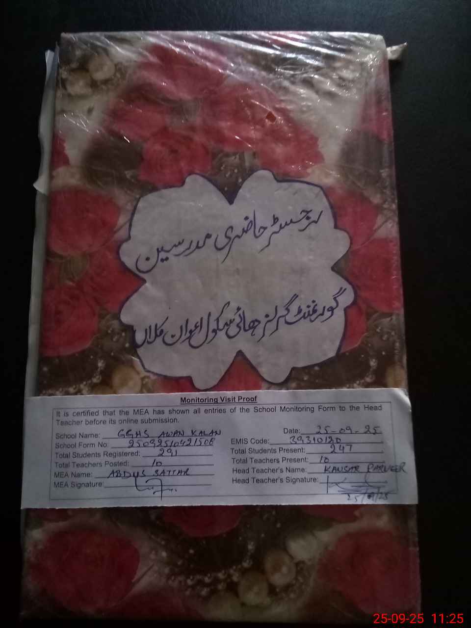 | Attendance Register | Head Teacher | MEA with School | Visit Proof |