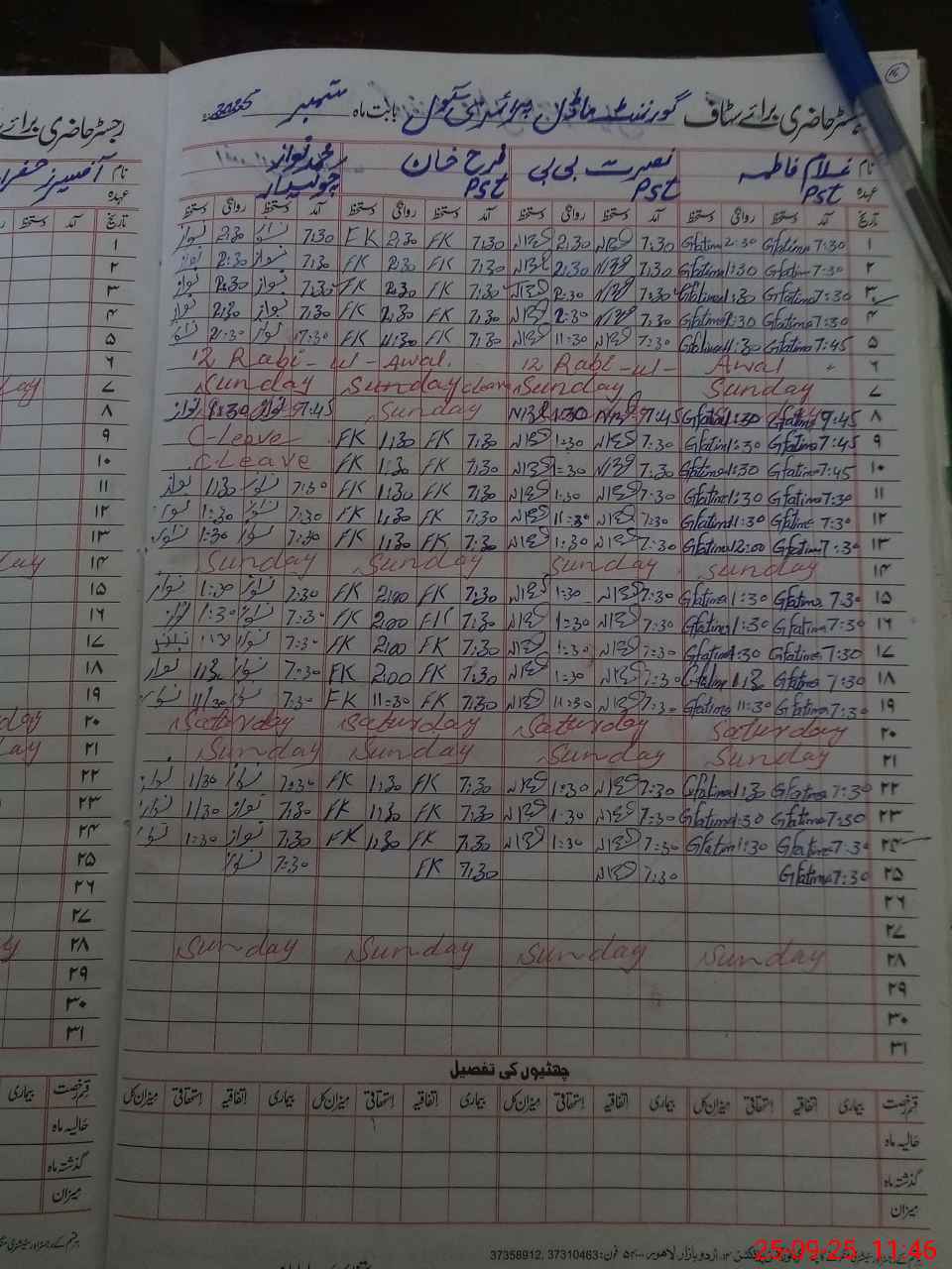 | Name: FA**** RA**** Designation: (School Headmaster's/Headmistress's) PST Phone/Cell Number: 03**** |
