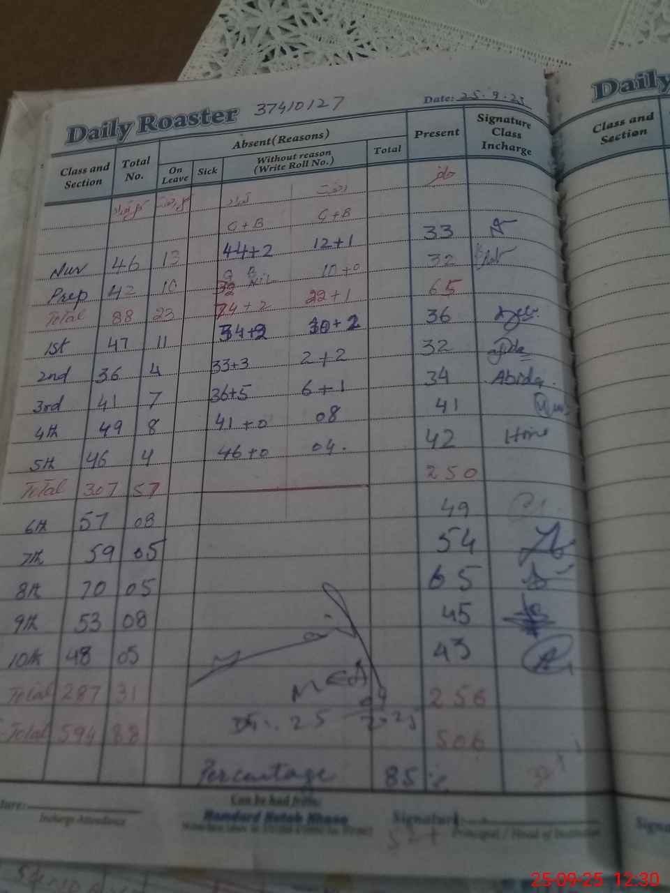 | Total Students Present | 0 | 0 | 65 | 36 | 34 | 32 | 41 | 42 | 49 | 54 | 65 | 45 | 43 | 506 | ||