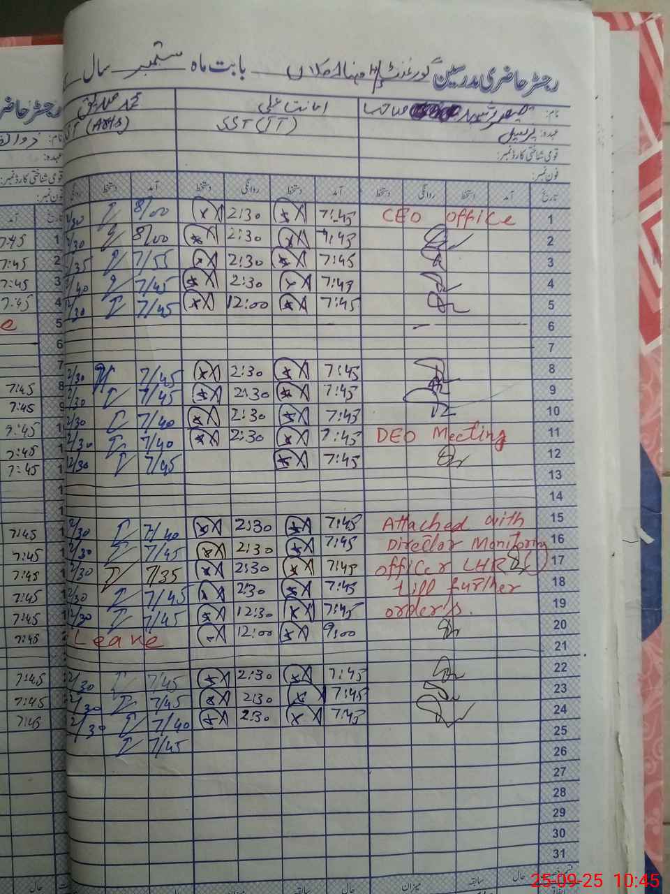 | CNIC | Full Name | Designation | R/C | Absence During Last Calender Month |