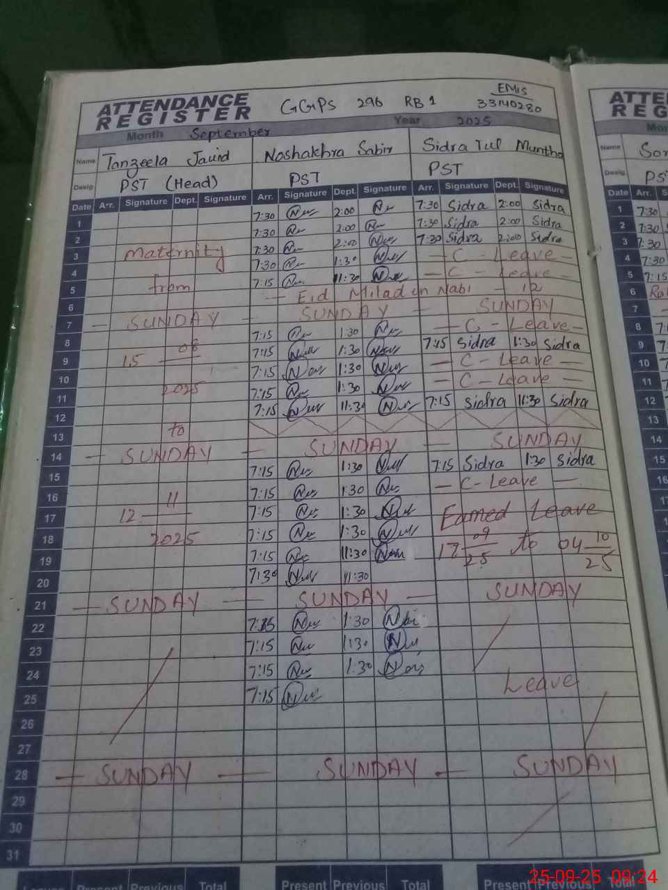 | 31**** | Ta**** Ja**** | PST | Regular | 16 | 0 | 0 | 16 | 0 | 0 | 0 | 0 | 0 | Maternity |