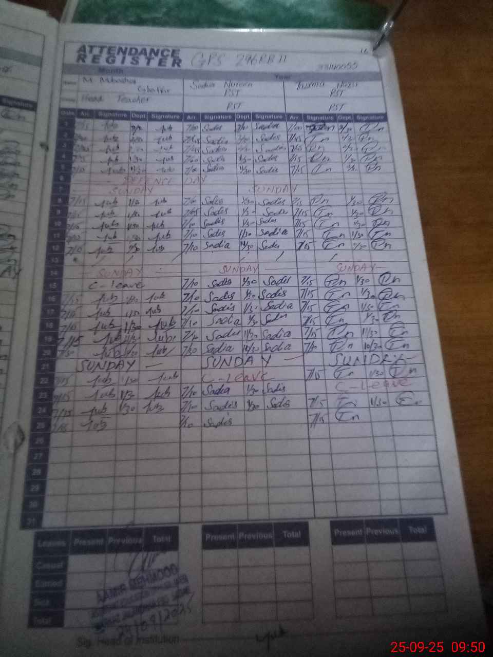| CNIC | Full Name | Designation | R/C | Absence During Last Calender Month |