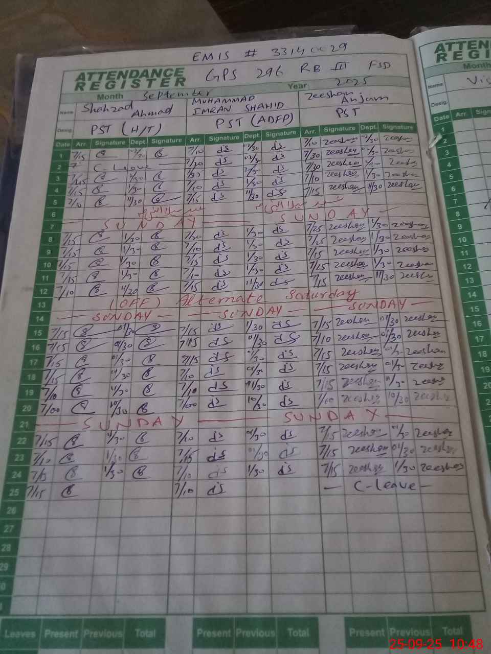 | CNIC | Full Name | Designation | R/C | Absence during last cal. month |