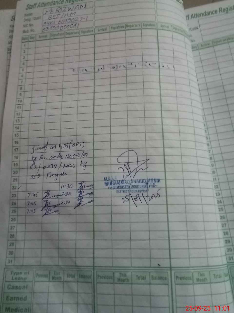 | Name: MU**** RI**** Designation: (School Headmaster's/Headmistress's) SST G Phone/Cell Number: 03**** |