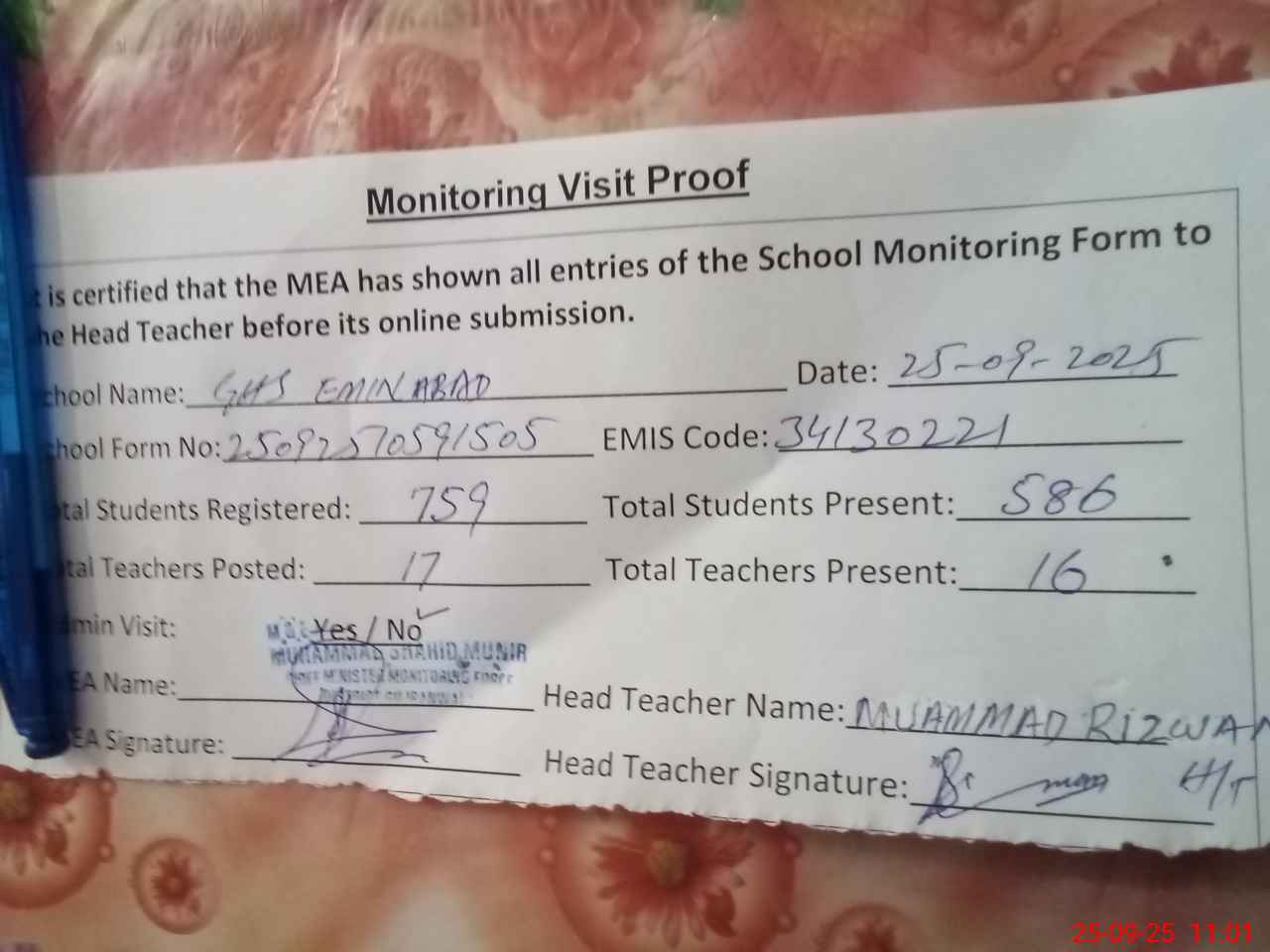 | Certified that this School was Inspected by the Undersigned MEA/DMO Today and the Information Stated Above is as Per Record. | |||||