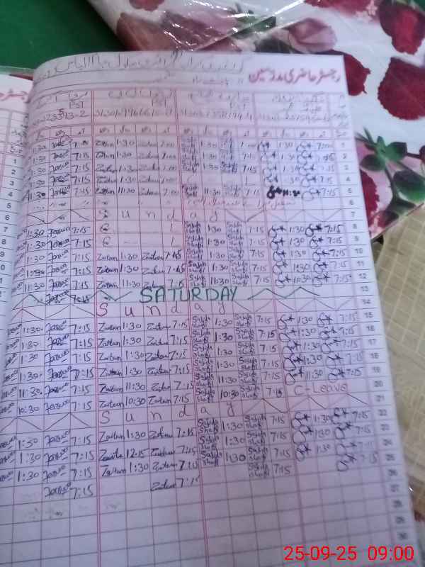 | CNIC | Full Name | Designation | R/C | Absence During Last Calender Month |